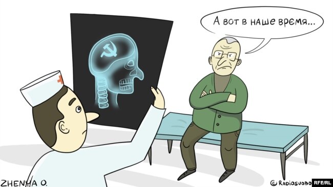 Анатолий Стреляный: На волнах Радио Свобода передача о советских мифах, об их создателях и носителях, то есть о крестьянстве, о деревне, хлынувшей в город таким бурным потоком, что в начале 60-х годов доля городского населения стала приближаться к 70 процентам, а в середине 20-х было меньше 20. В любом обществе население очень боится перемен, в том числе, наверное, и потому, что при каждой большой перемене волна выносит наверх новых людей, кто был никем, становится всем. Это голые люди, к ним мало что пристало из накопленного прежним порядком, они не отрицают, например, Пушкина, он для них просто не существует. "Жили-были две шмары, Татьяна и Ольга. У них были два ухажера - Ленский и Онегин". Это не из разговора уголовников на нарах, это из школьного сочинения 1926 года. Когда перемен не удается избежать, когда является новый порядок, новая сила, такая, что ее не преодолеть, люди начинают ее использовать, раз нельзя ее устранить, они начинают с нею играть, применяют способы, которые, по словами одного исследователя, "напоминают способы мимикрии растений и рыб, которые пришли из лесов и океанов на улицы наших деревень и городов. Потребление порядка, созданного другими, создаёт определённую игру с этим порядком, пространство для маневра неравных сил, бесчисленное множество способов игры в чужие игры, и порча этих игр. И наступает момент, когда игра оказывается так испорчена бессознательными, а, частью, и сознательными усилиями обеих сторон, что больше не может продолжаться. Миф свое отработал. Миф умирает".