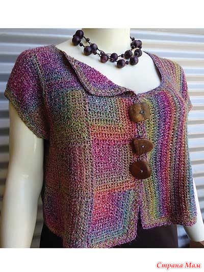 Еще одна простая модель в модной технике вязаного пэчворка.
