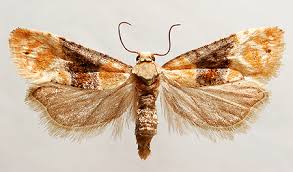 Гроздевая листовертка – бабочка с серыми крыльями, на крыльях есть несколько рыжих пятен и две косые полосы коричневатого цвета.