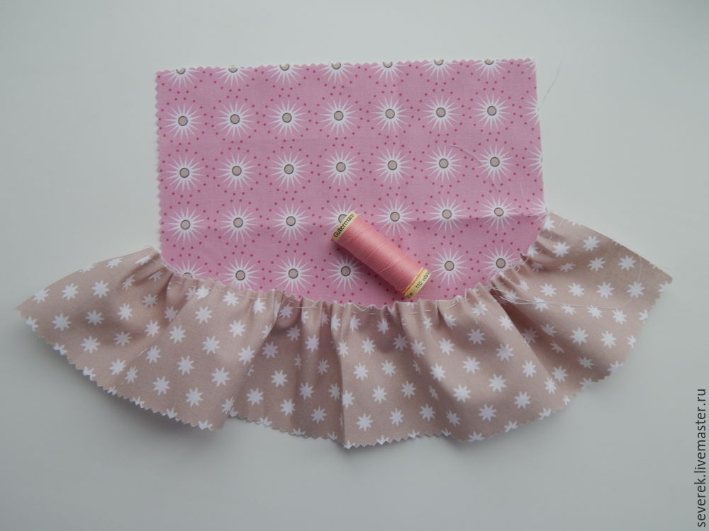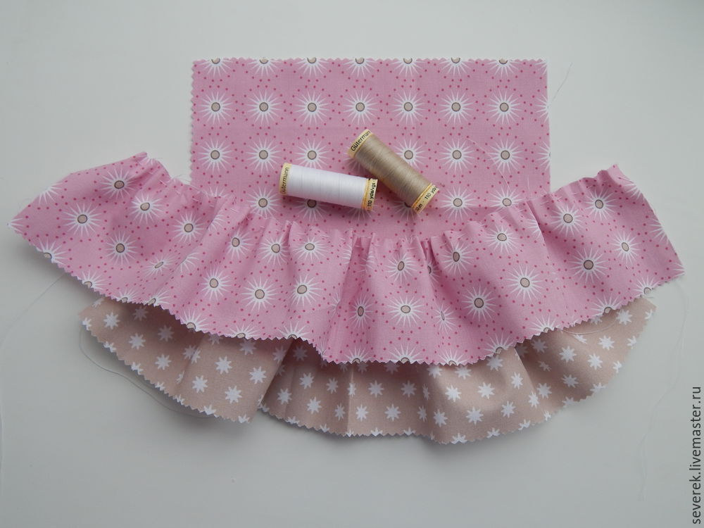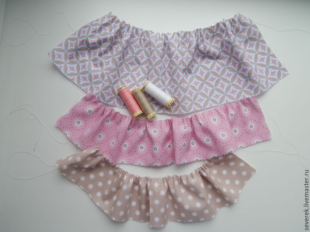 Шьем платишко:) Проходим по верху полосок частой строчкой, стягиваем по бокам и формируем рюши.