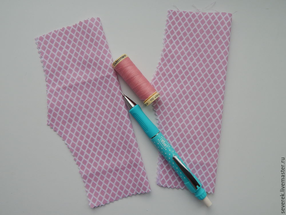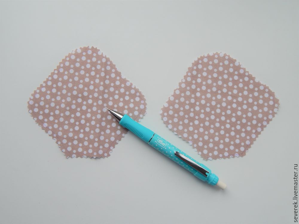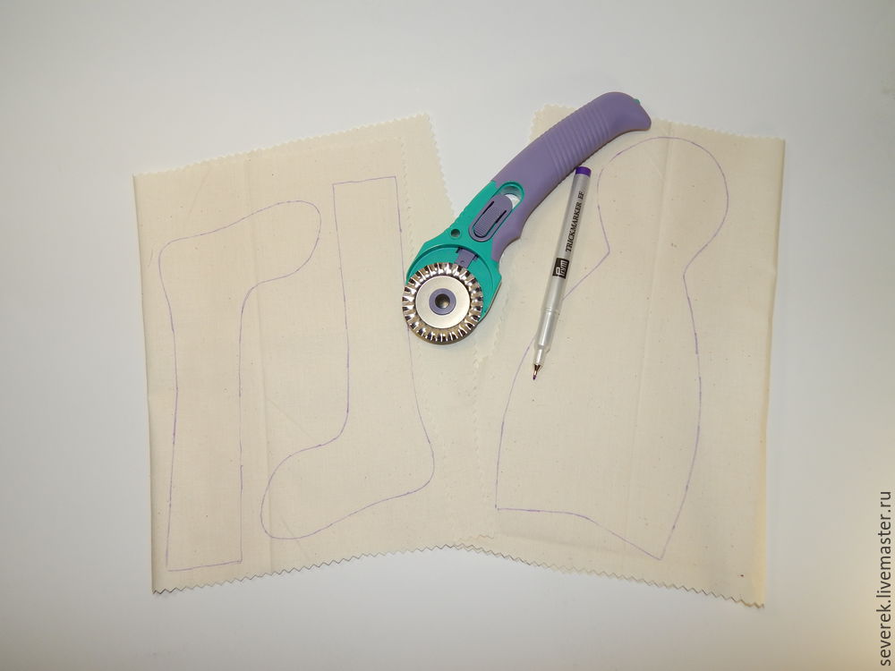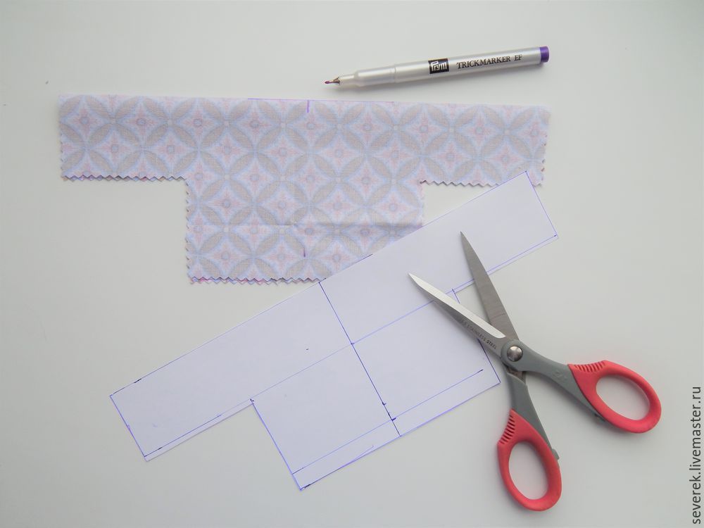 Выравниваем выкройку, чтобы на ушках получился одинаковый узор.