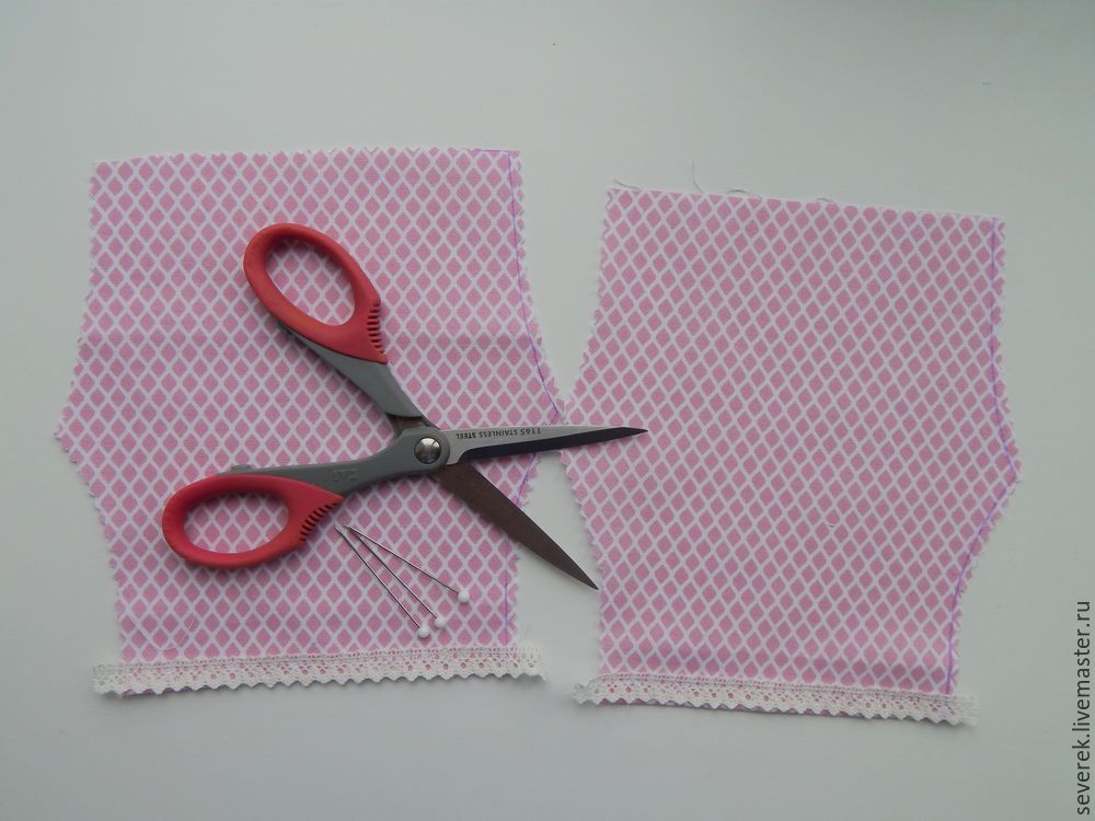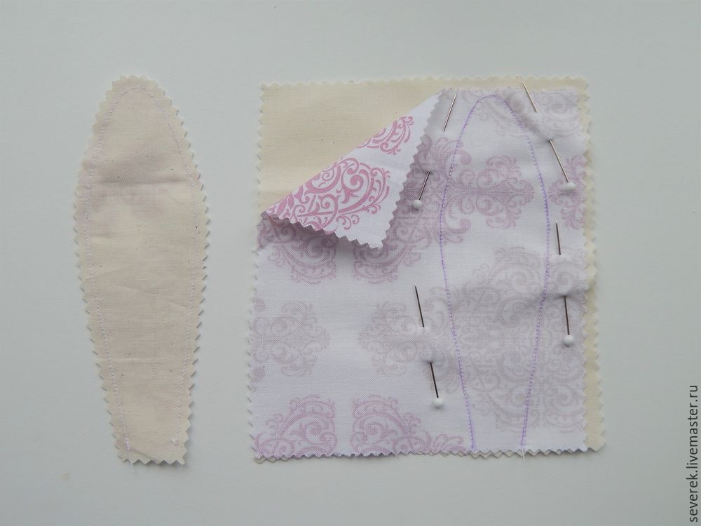Сшиваем детали, наложив одну ткань на другую, только после стачивания вырезаем.