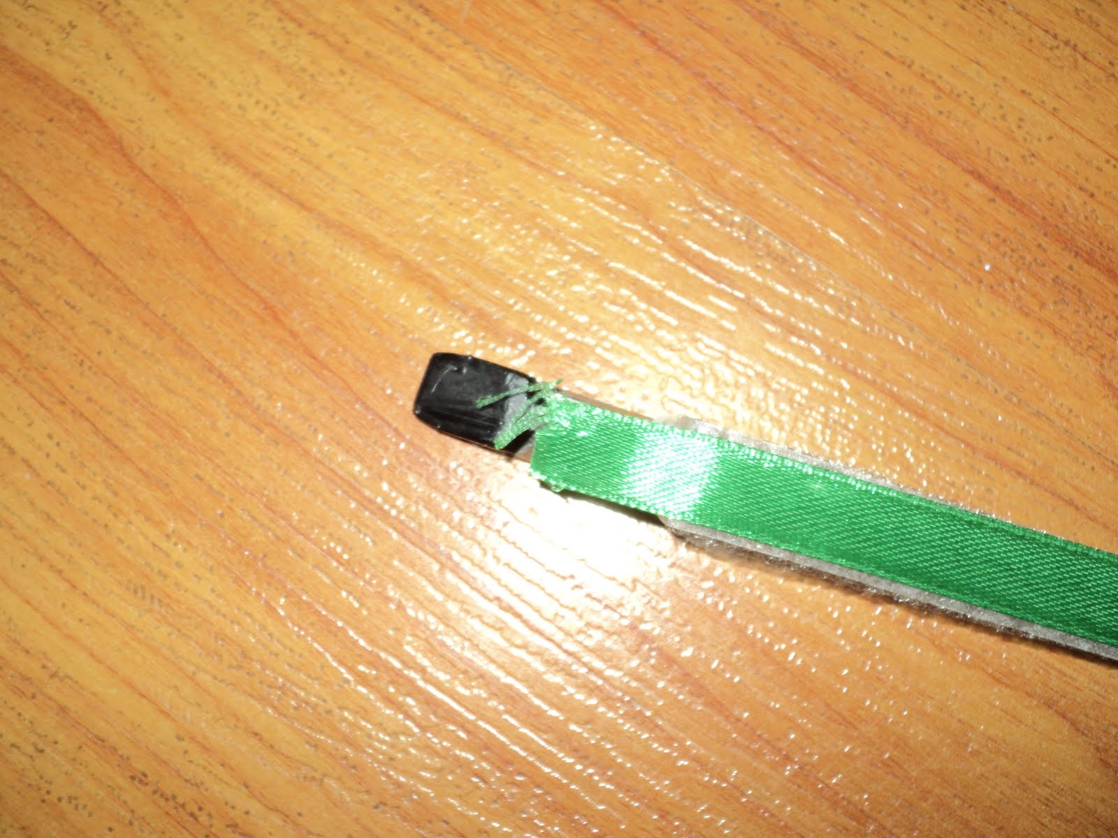 Берём атласную ленту шириной 10мм. Длина ленты должна быть больше отрезанной от трубы полосы на 3-4 см.!!! |