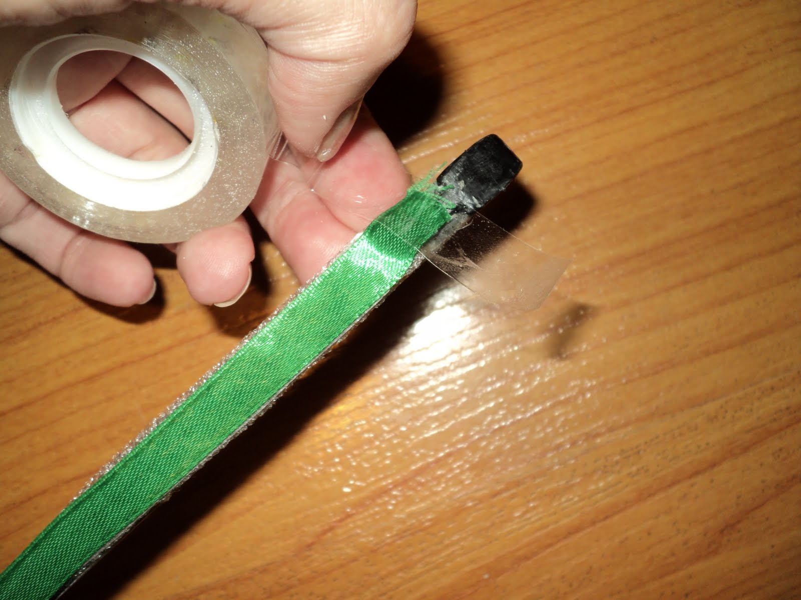 Обычным тонким скотчем приклеиваем эти выступающие кусочки.Обмотав скотч несколько раз во круг планки. |