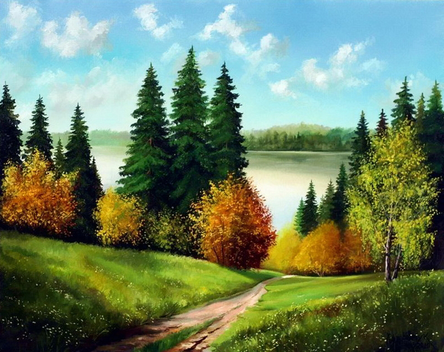 Любит насыщенные яркие цвета, ведь картина должна привлекать внимание зрителя, не должна быть «глухой», невзрачной.