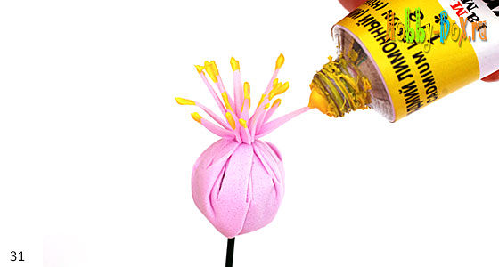 К основанию тычинок с помощью термоклеевого пистолета крепим 10 лепестков, а