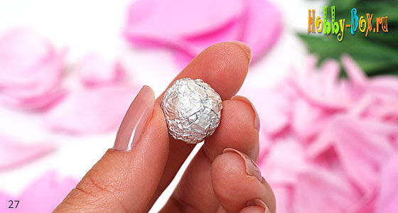 Для основы цветка понадобится еще кусочек фольги или бусина диaметром примерно 1,5 см.