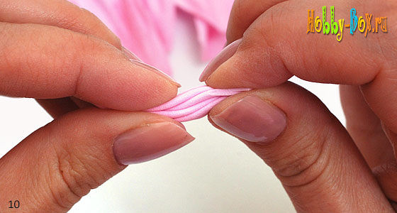 Выкручиваем оба конца в разные стороны и теперь тщательно покатаем сложенную заготовку между пальцами.