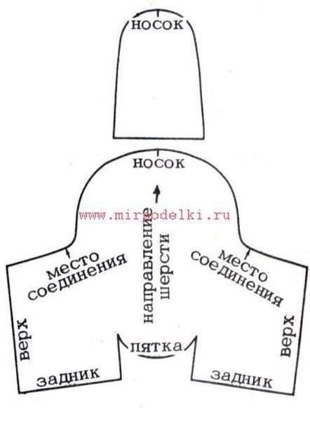 Итак, меховые пинетки для крохи можно сшить из шкурки кролика или ягненка. Возможны и другие варианты. Начнем с выкройки. Запомните: все выкройки из меха должны учитывать направление ворса, как здесь: