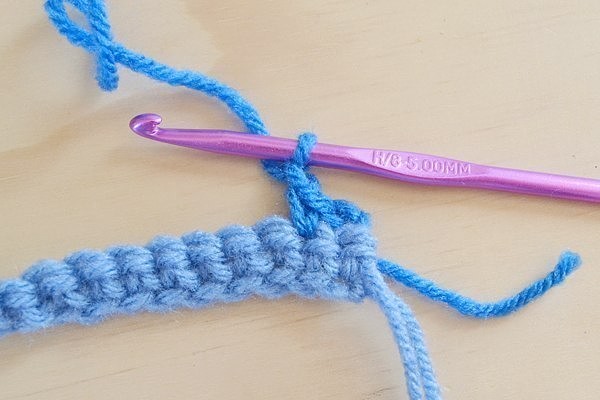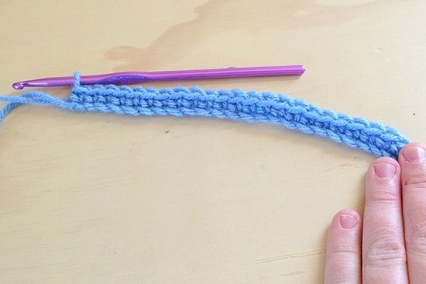 Во вторую от крючка петлю выполняем столбик без накида (СБН) и вяжем СБН до конца ряда.
