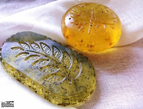 1. Натрите мыло, добавьте оливковое и касторовое масла, травяной отвар и растопите на водяной бане.