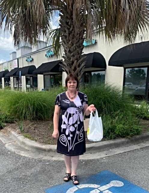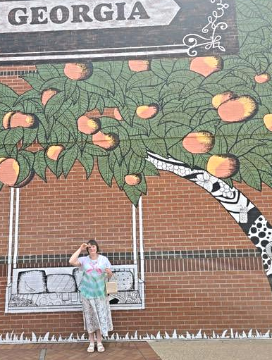 Возле стены, перед входом в молл, чтобы видно было,что я побывала в Джорджии: