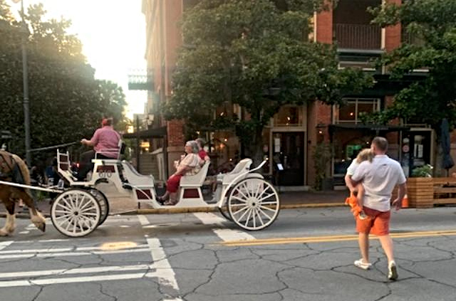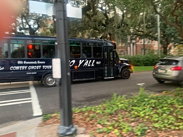 По городу Саванна разъезжает очень диковинный транспорт, ввиде открытых кабриолетов с лошадиными упряжками,также- диковинных самокатов,мотоциклов, автобусов и машин,- всех видов и марок...