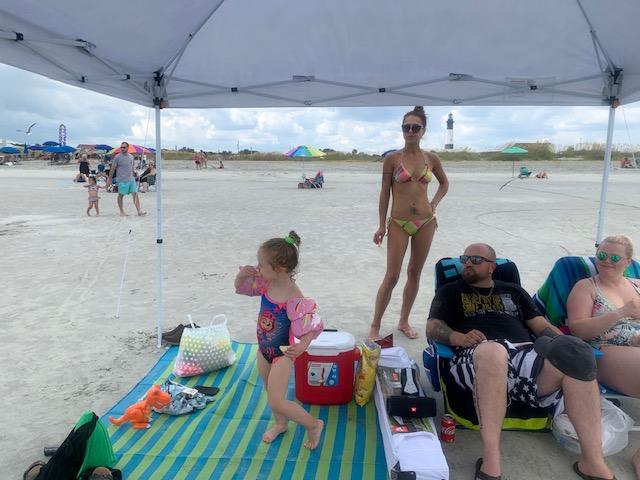 В один и тот же день мы застали и солнце, и небольшой шторм с волнами, и тёплый лёгкий дождичек. Внуча даже поспала час под тентом.