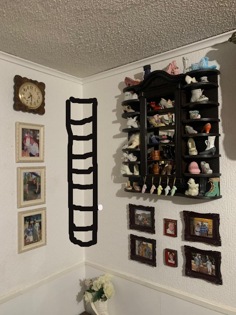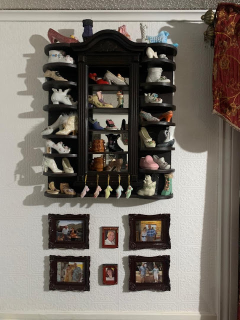 Опять же Игорь сделал мне вот такую угловую полочку, по моей просьбе, чтоб я могла дальше собирать керамические туфельки-сувениры: