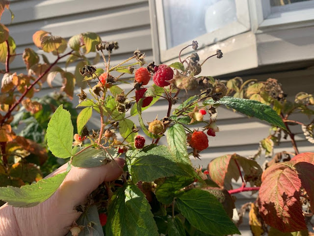 Сегодня ночью малинка чуть обвяла,с холодом; но есть ещё можно.