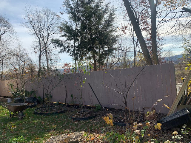 Позавчера был последний тёплый день, и мы с большим ускорением красили вдвоём новопостроенный забор. Ух! Успели!