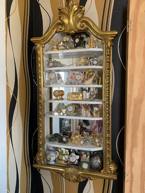Игоря несколько раз просила, чтоб он сделал мне ещё одну полочку,между пятой и шестой полкой(сверху); мне удалось часики сконцентрировать так, что самые низенькие стоят теперь на высокой полке, и это даёт местечко ещё для одной узкой полочки: