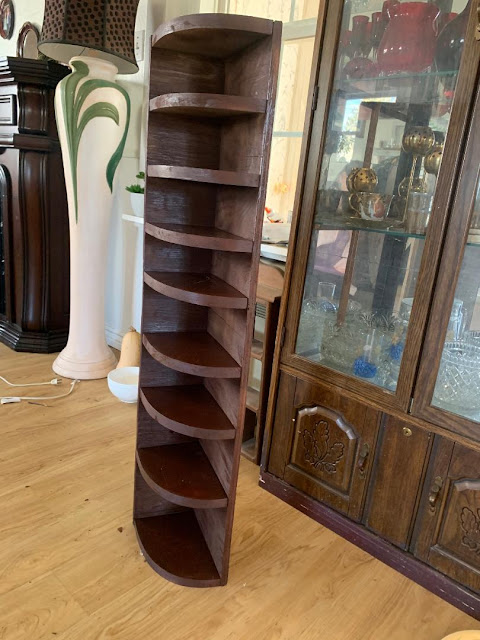 Пришлось стоячую лампу из того угла двинуть, втиснуть её рядом с камином ; а в углу освободилось место для узкой полочки.