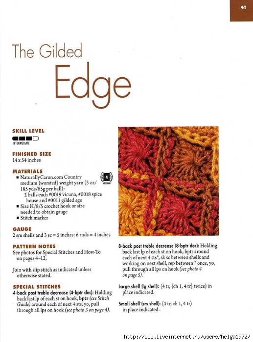 Нить другого цвета прикрепить между 3-м и 4-м столбиками второго ряда лепестка. Далее провязать 5 ВП и 4 С3Н с общей верхушкой последовательно в столбики второго ряда. При этом С3Н вяжут так же, как изнаночные рельефные столбики, у 5 ВП делается крепление к основанию, затем 5 ВП, 7 С3Н с общей верхушкой и опять 5 ВП. Повторить для каждого лепестка.