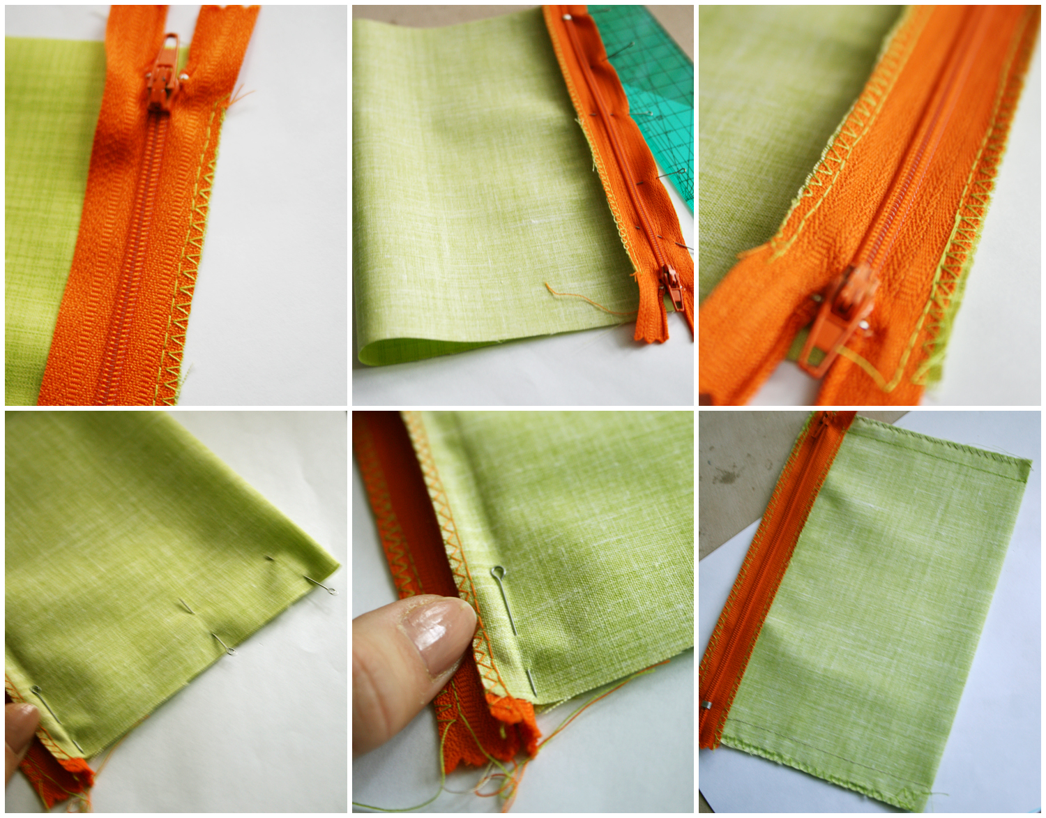 На край молнии пришиваем их. Строчка не должна захватить сам карман. Только возле молнии!!! Это важно!