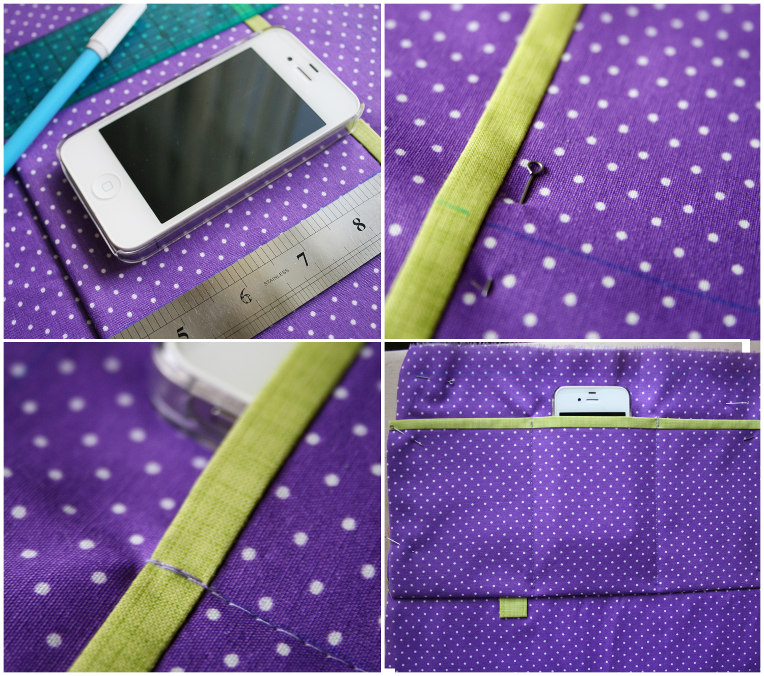 Теперь разметим один большой карман на удобные небольшие части. По сложившейся традиции делю на три (отдельно для мобильного, ключей и кому что нужно) Можно отстрочить один или несколько узких, типа для ручек. (кажется, кто-то собирался шить для детей? можно и для нескольких карандашей сделать карманы). Короче, еще место для творчества )))
