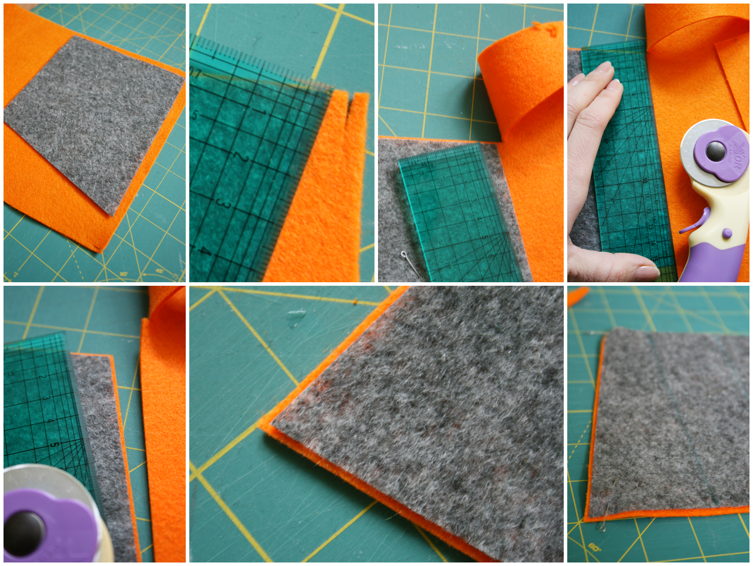 Выкраиваем из серой основной деталь по выкройке. А теперь из цветного фетра такую же деталь, но край с каждой стороны должен выступать на 1 - 2 мм из под основной. Аккуратно под линеечку приступаем!