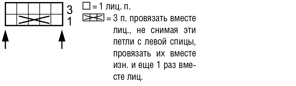 Затем выполнять ложный узор из «кос». Отметить боковые швы = начало круг.р. и после середины = 55 (60) п. каждой половины.