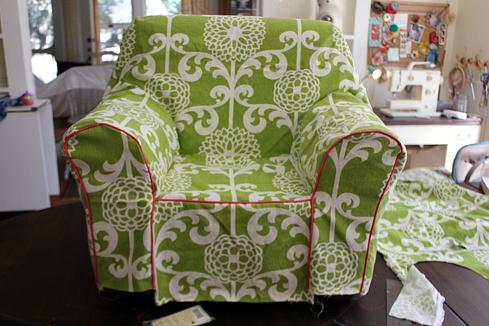 Если вам нужно, чтобы этот проект был полностью совершенным, вы всегда могли бы откладывать свои задрапированные кусочки ткани на бумаге, проследить их, чтобы сделать узор, и отрегулировать все линии шва так, чтобы они идеально соответствовали. Если бы я делал более одного из этих стульев или продавал его, я бы это сдела