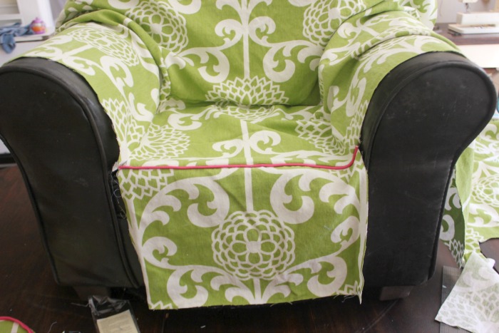 Я сшил кусок фуксийского трубопровода на дно сидения для небольшого поп-цвета. Это детский стул и нужно быть веселым!