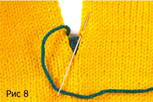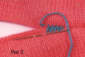 2. Законченный шов соединения петель к рядам на изнаночной глади. |