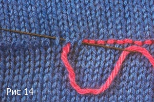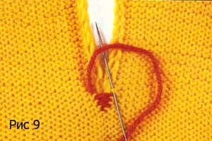 Соединяя открытые и закрепленные петли, вводите иглу под петлю то на детали с закрытыми петлями, то в соответствующую открытую петлю. |