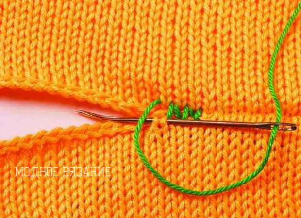 Законченный шов соединения петель с рядами на лицевой глади. |