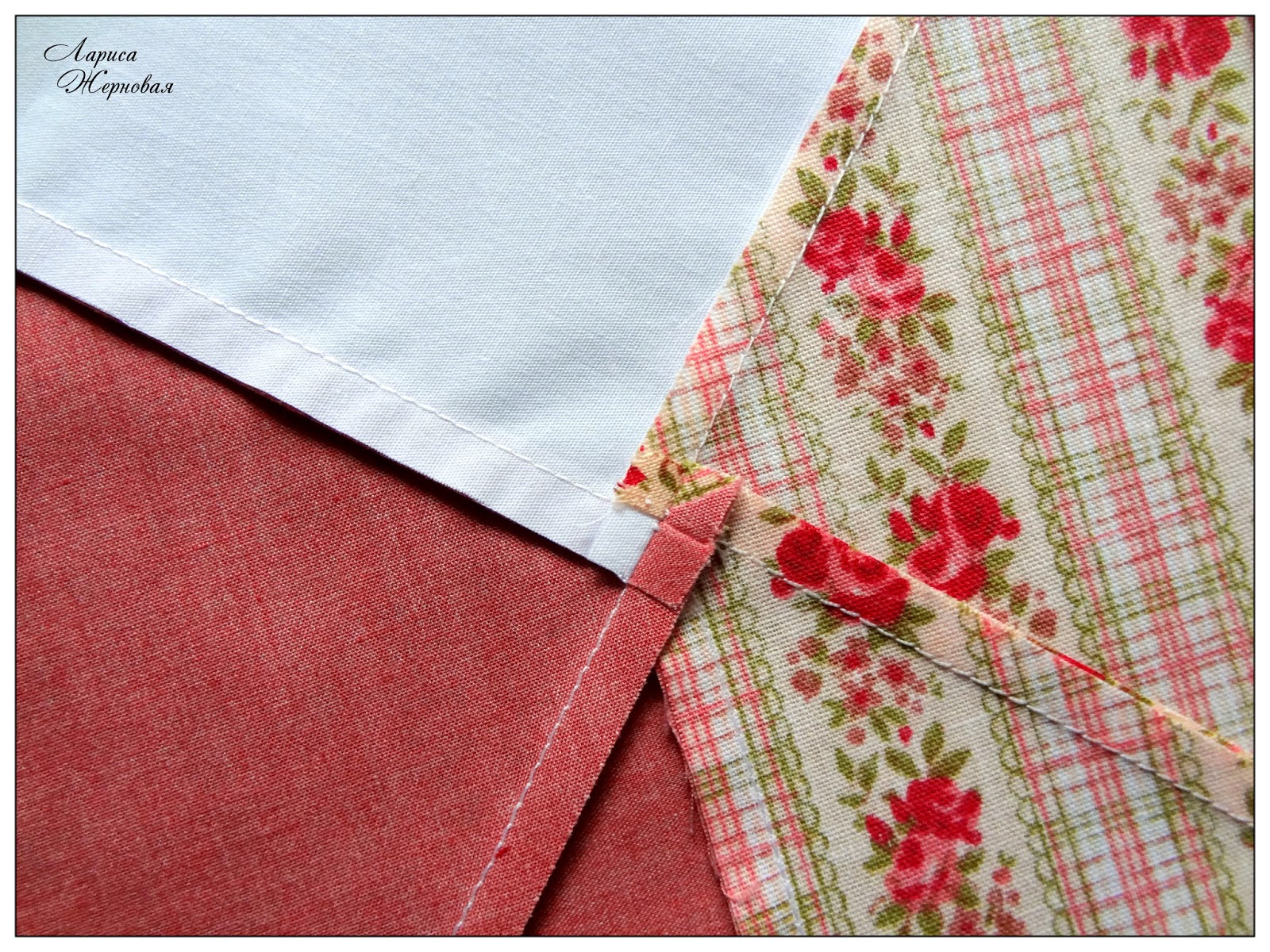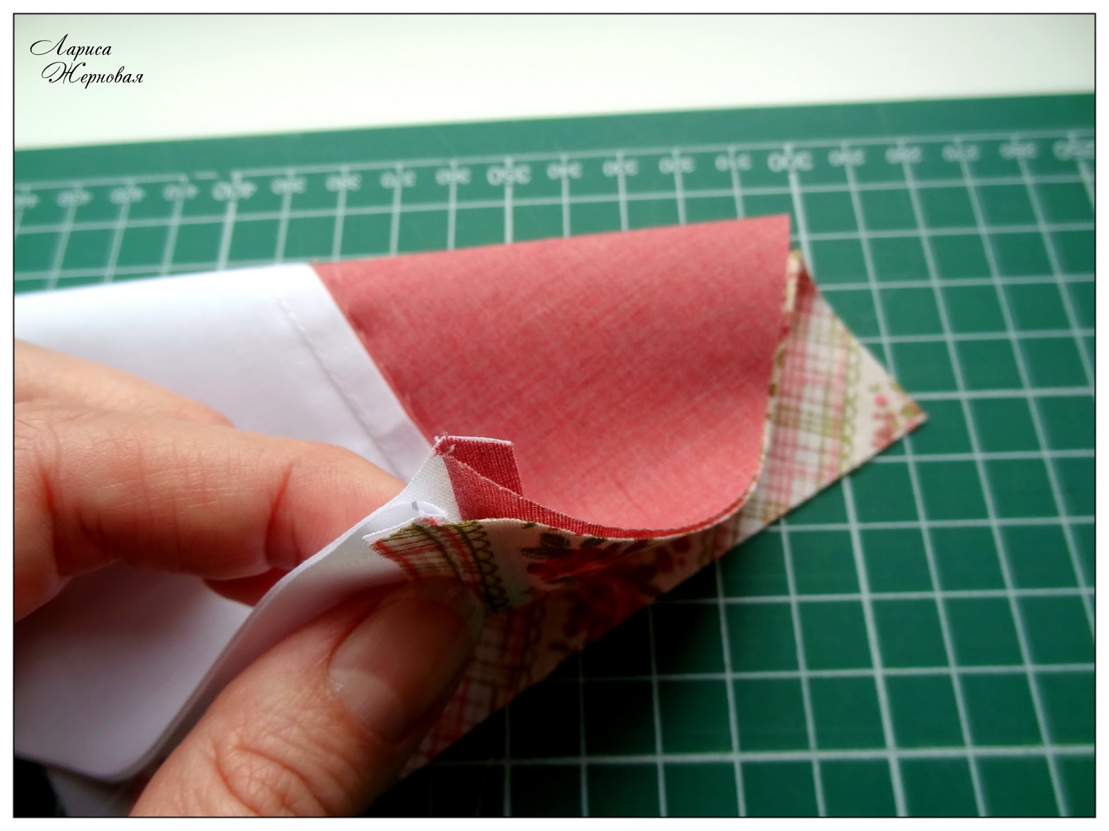Сначала нужно раскроить по 2 квадрата одинаковой величины каждого цвета: темного, светлого и белого . Сшить по периметру: темный с белым, темный со светлым, светлый с белым.