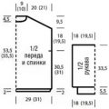Через 60 (62) см закрыть все петли, при этом средние 53 п. образуют горловину, внешние по 17 (24) п. — плечи.