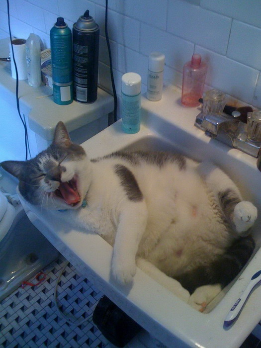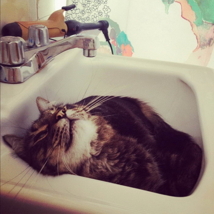 Даже если Ваш питомец никогда не интересовался раковиной, наверняка хотя бы раз в жизни выбирал довольно странное место для сна. Но что же может заставить котэ использовать жёсткую, скользкую чашу раковины (а то унитаза или биде), да ещё и с небольшой лужицей вокруг слива?