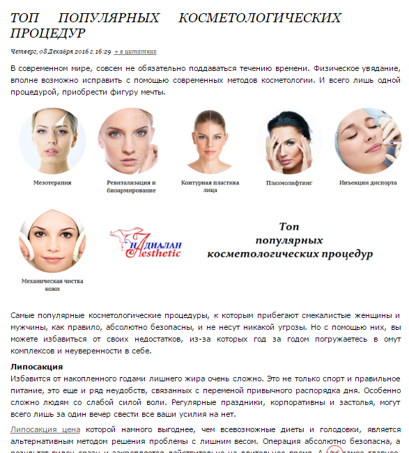 - Статья про популярные косметологические процедуры - http://di-via.ru/post403961117/