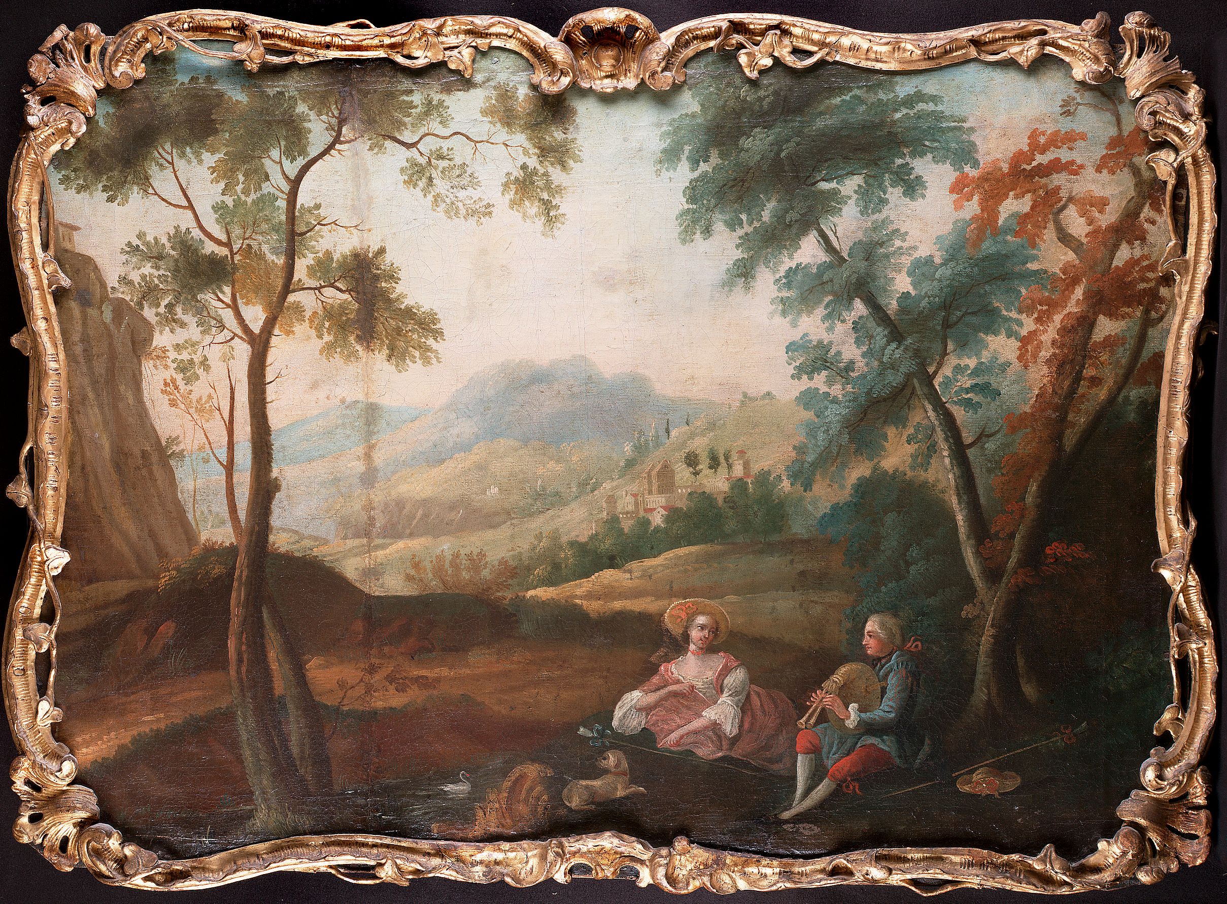 A young man serenading a shepherdess, an extensive landscape