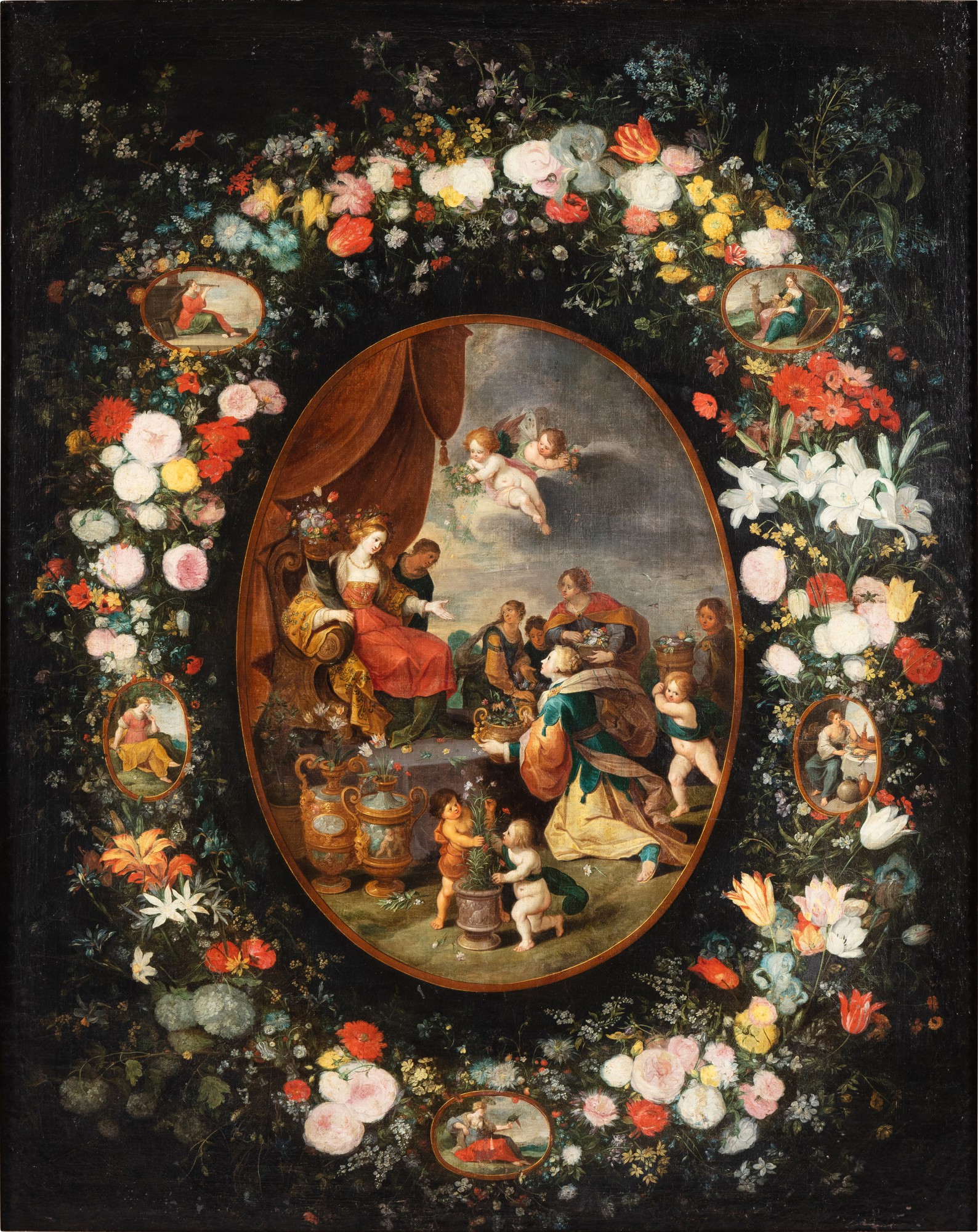 The Triumph of Flora with a garland of flowers and allegories of the Five Senses