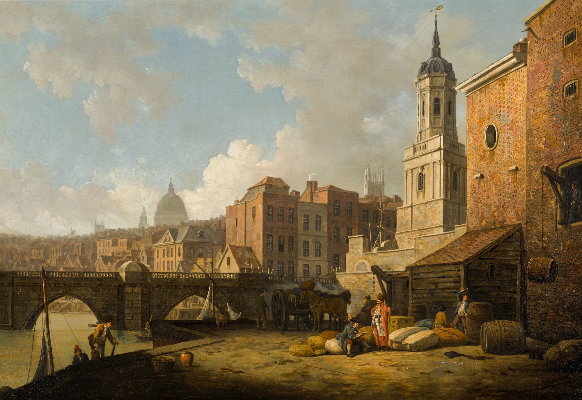 London, a view of Old London Bridge with Fishmongers' Hall