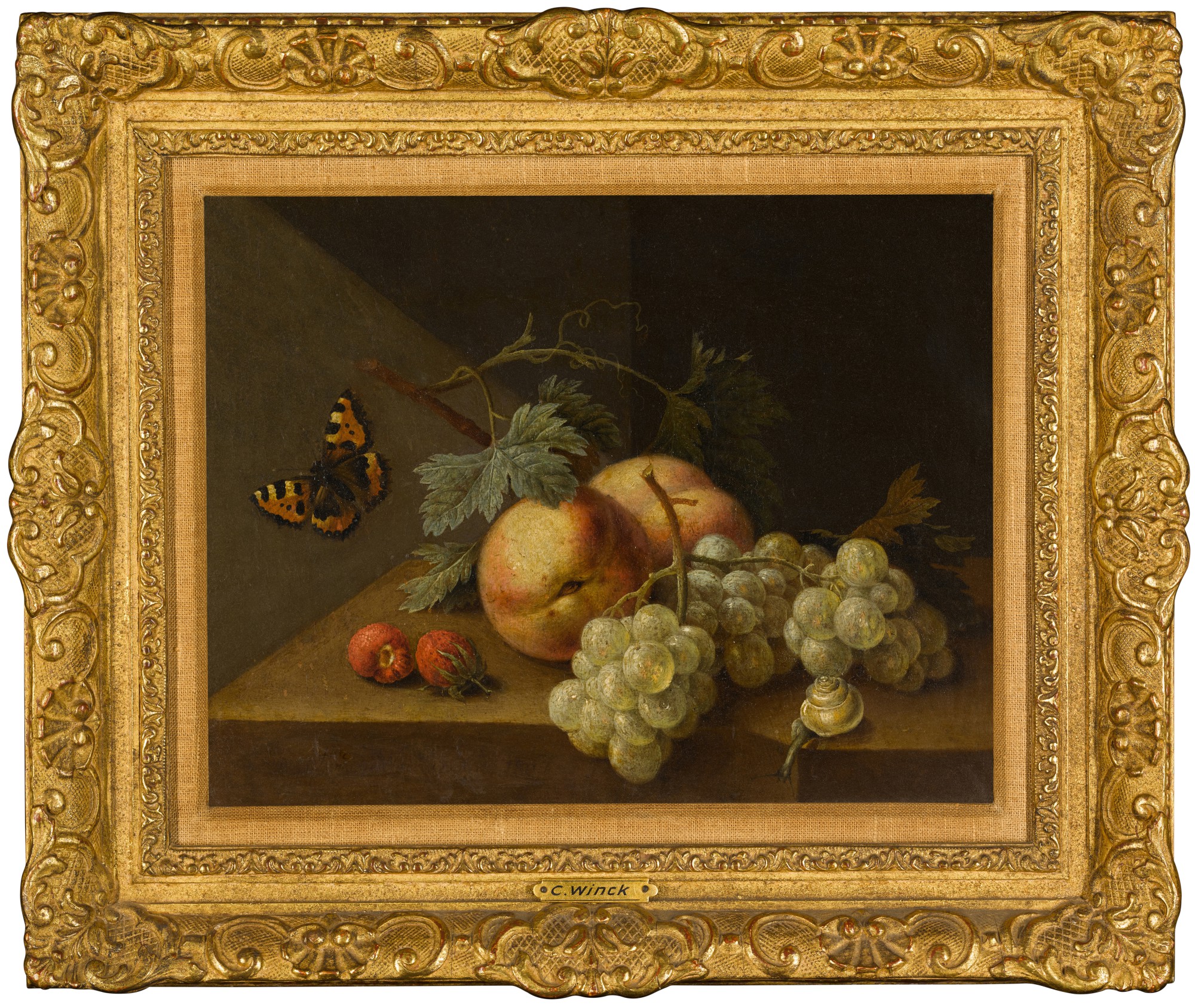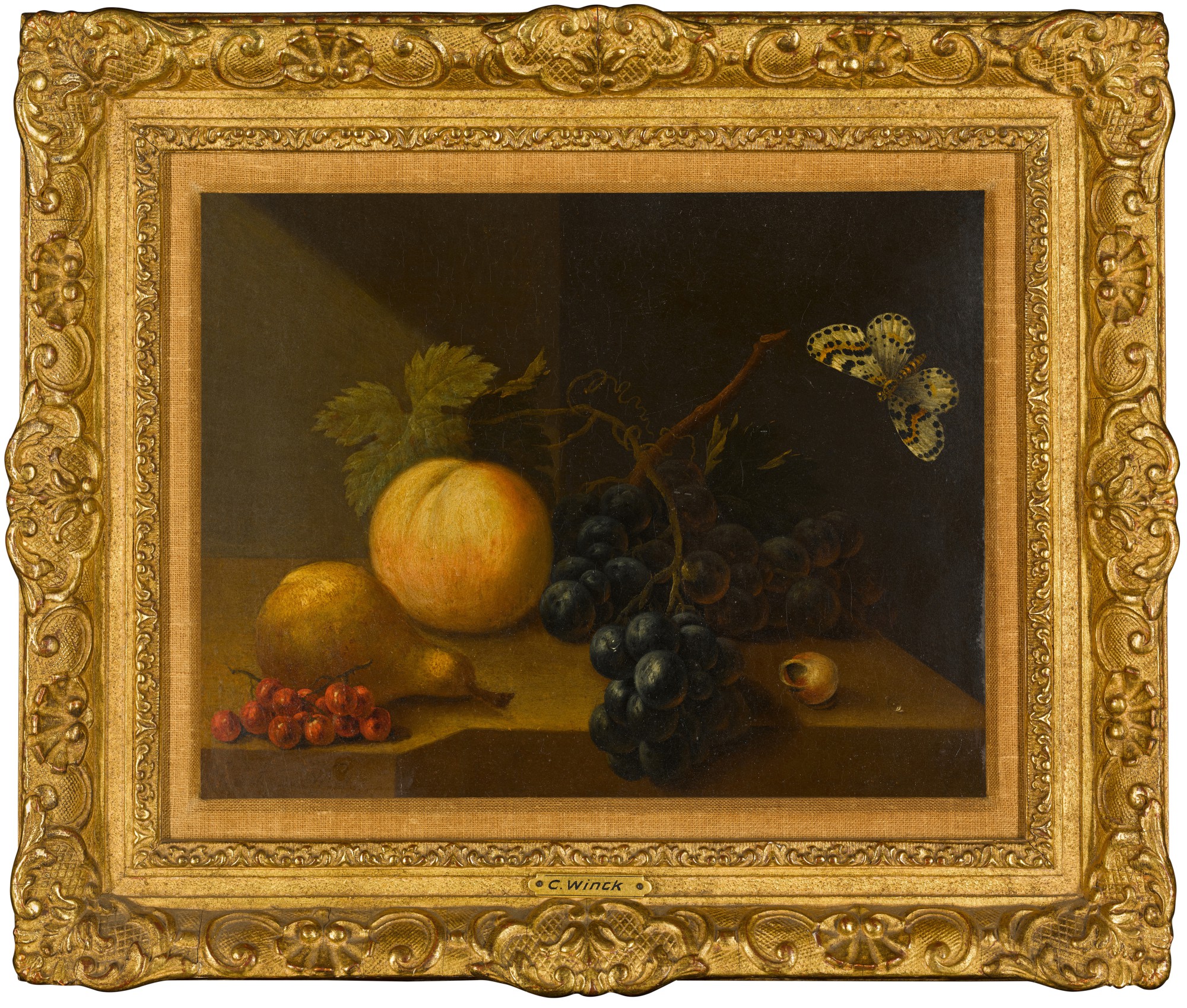 A pair of still lifes with fruit and butterflies
