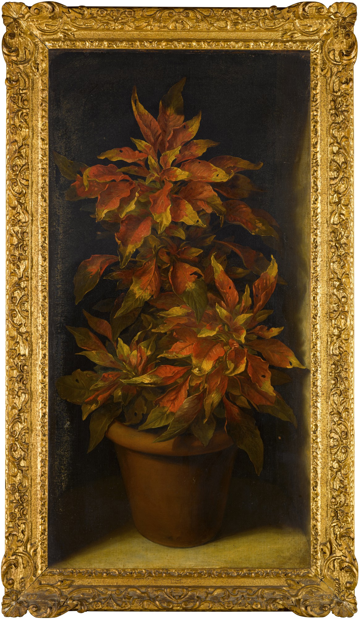 Still life of an Amaranthus tricolor in a terracotta pot