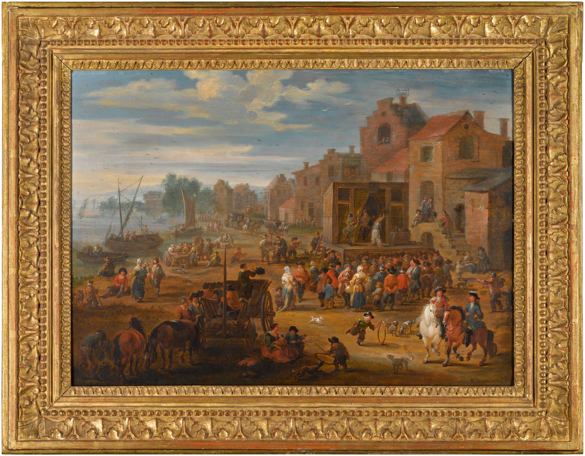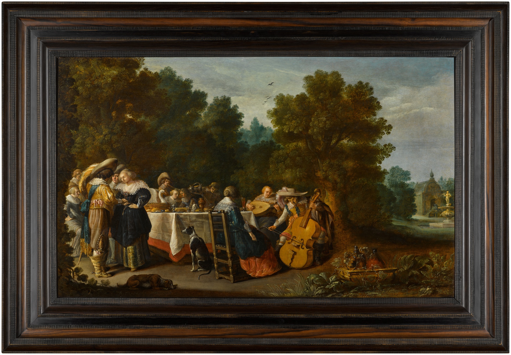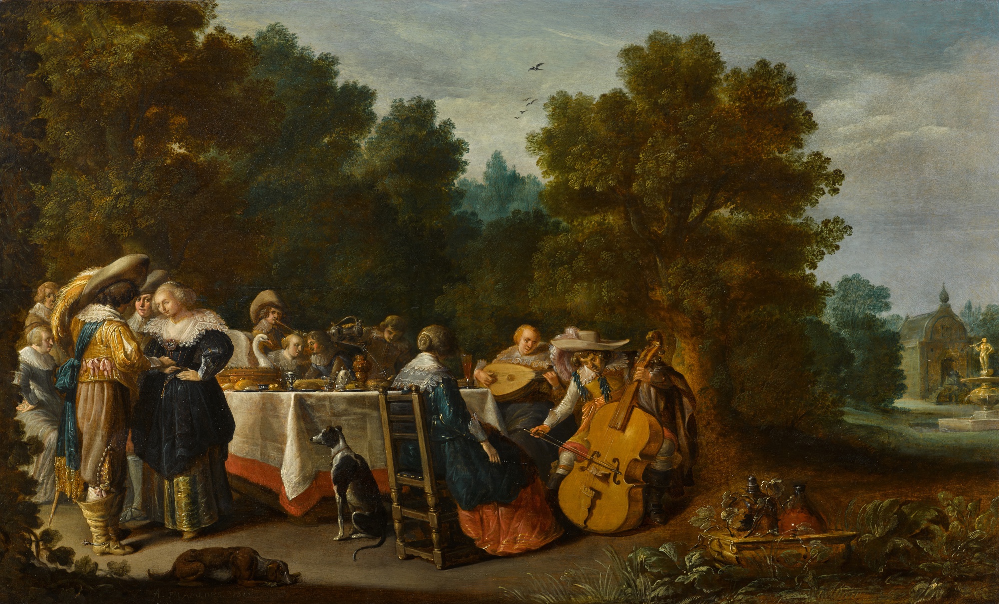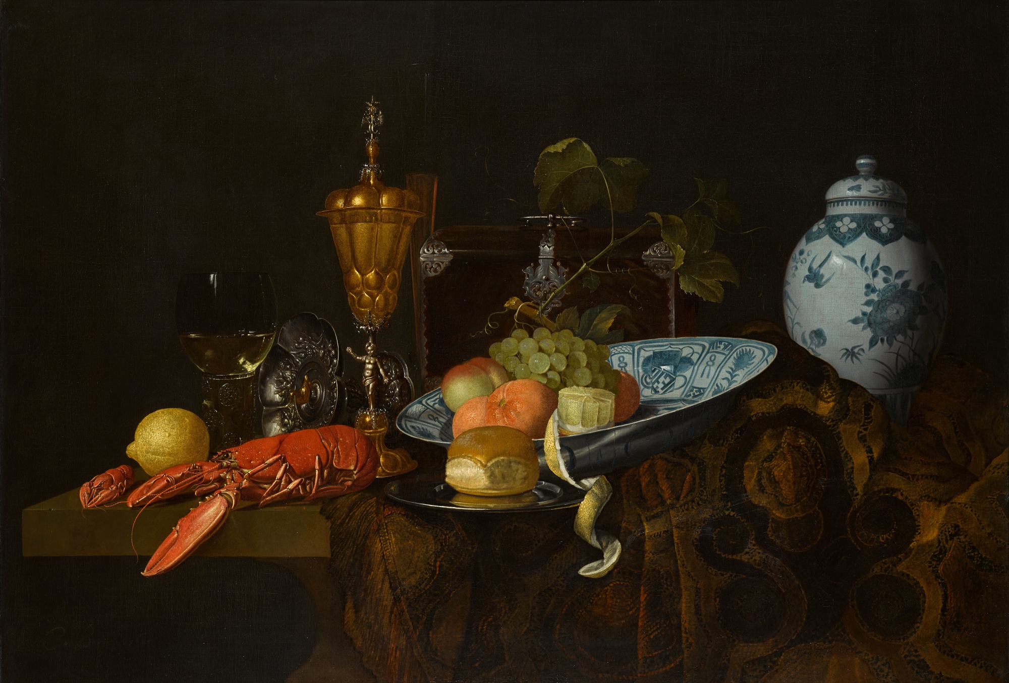 A 'pronk' still life with a lobster, bread, lemons, grapes and apricots alongside a gilt cup