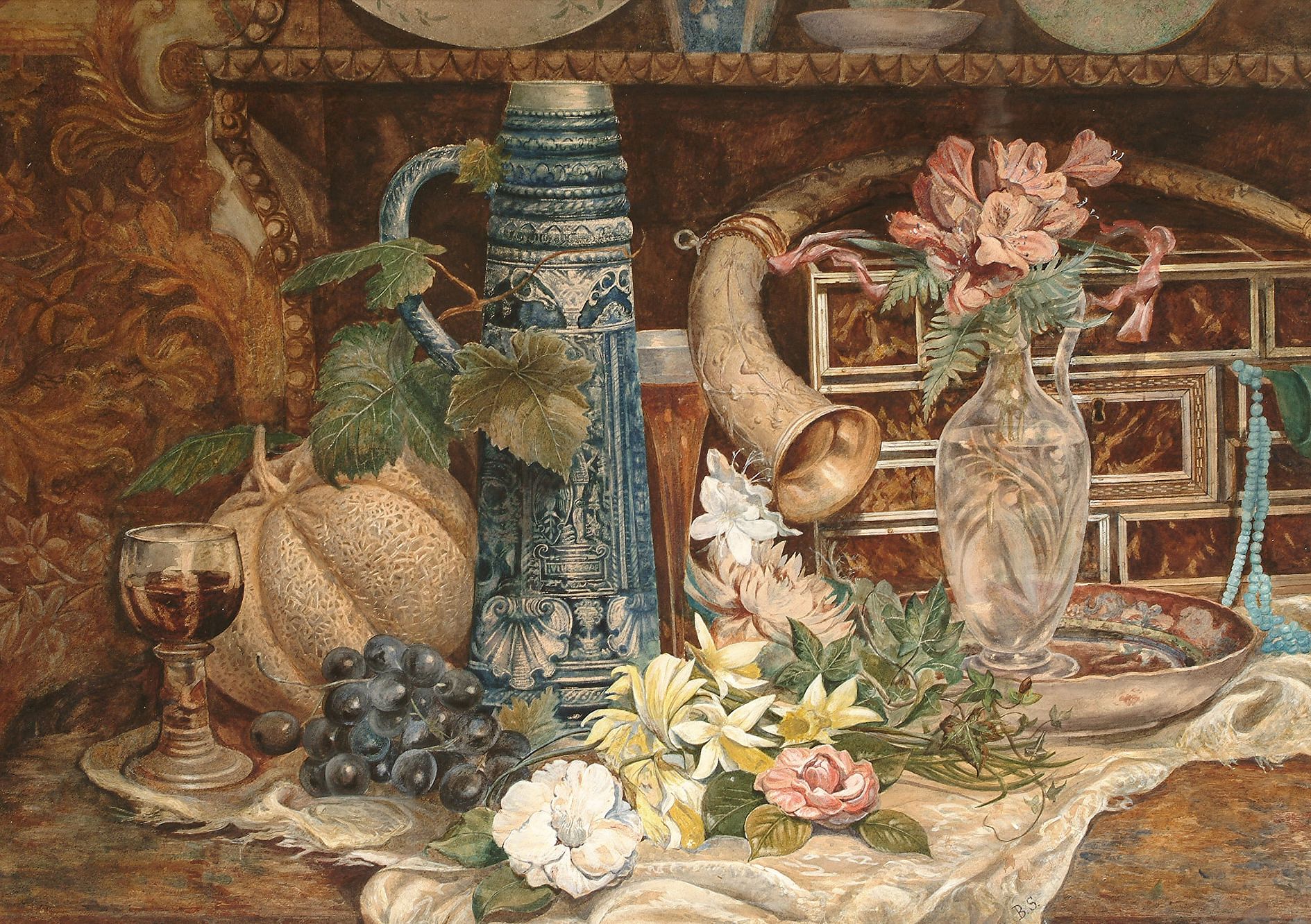 Ornate Table Top Still Life with Summer Fruits and Bird's Nest
