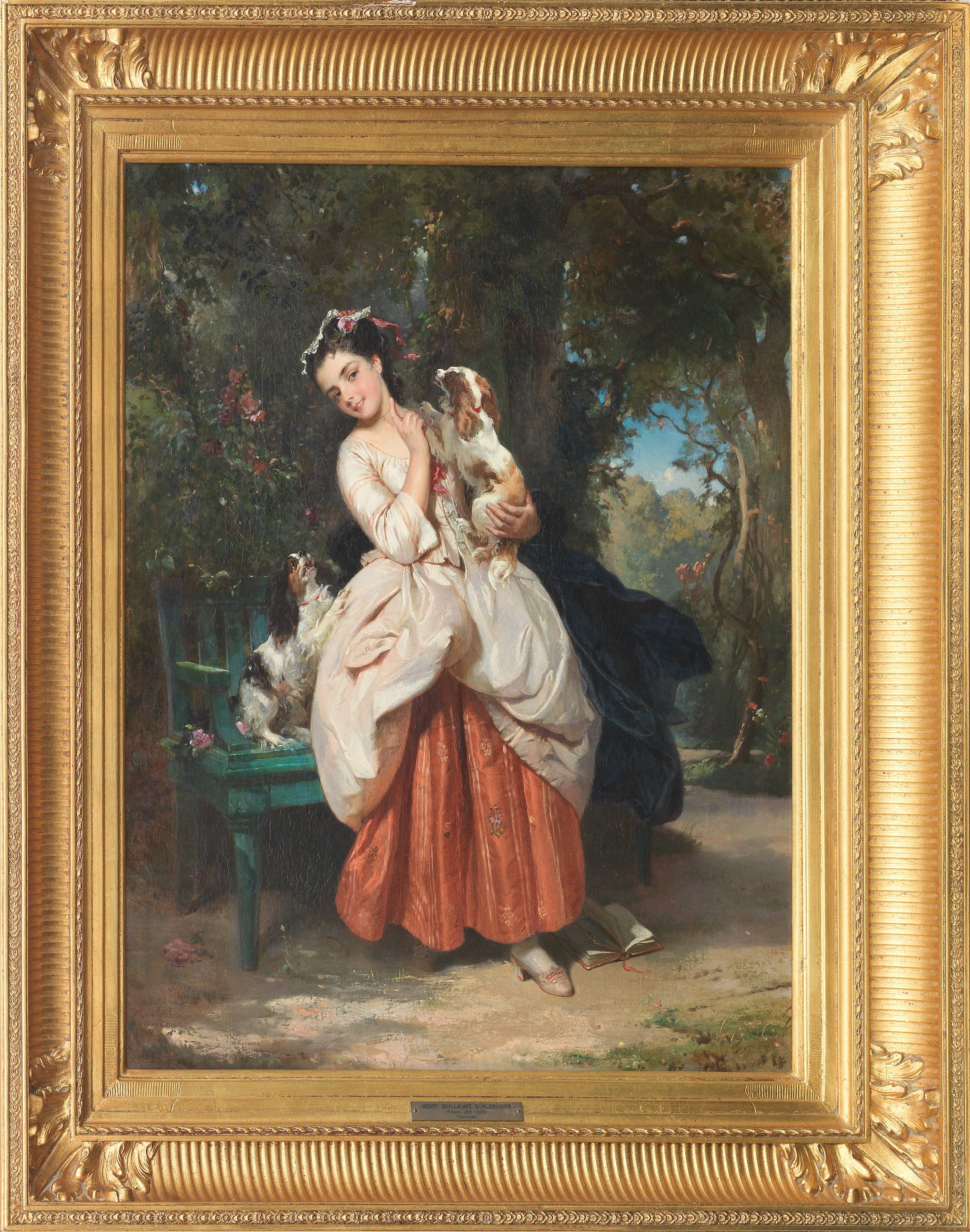 A Welcome Interruption, a Lady with Her King Charles Spaniels