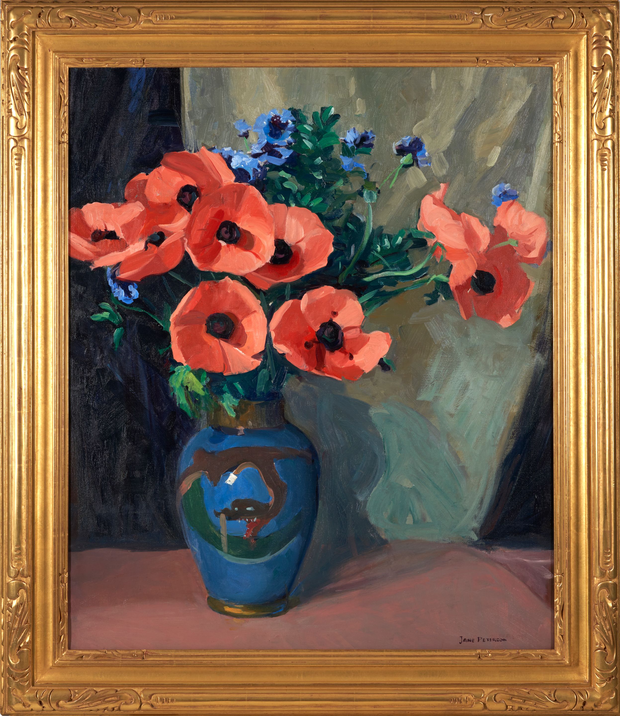 Oriental Poppies, Blue Chinese Vase