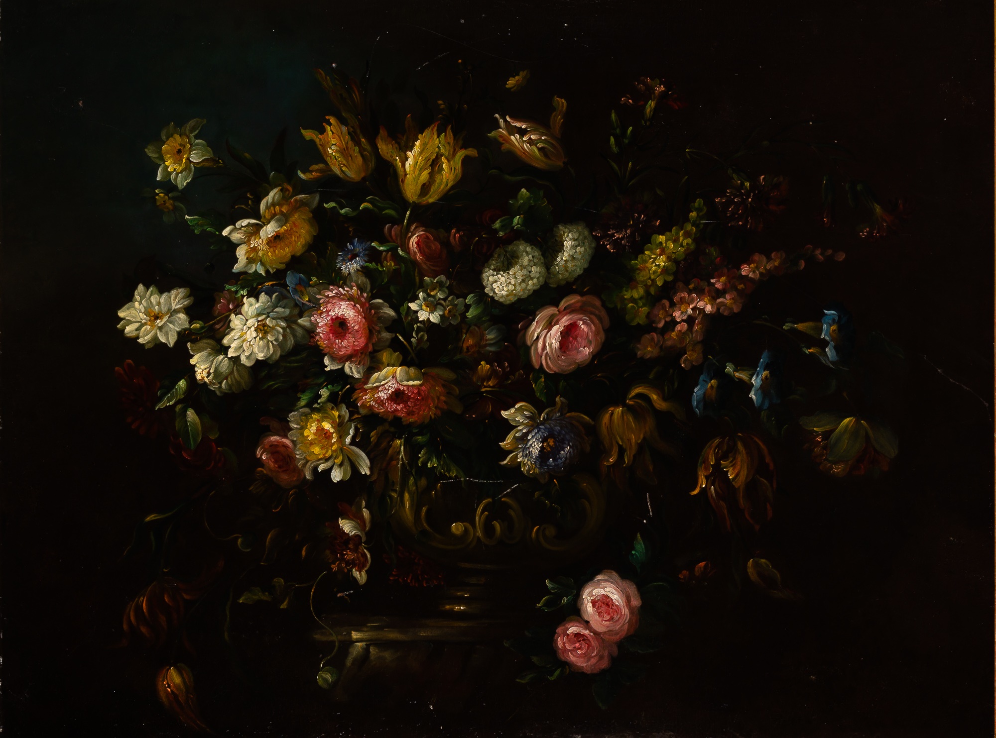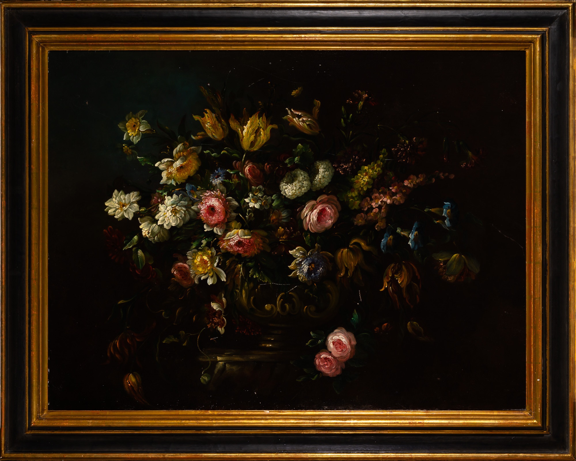 Still Life of Roses, Tulips, and Other Flowers on a Ledge