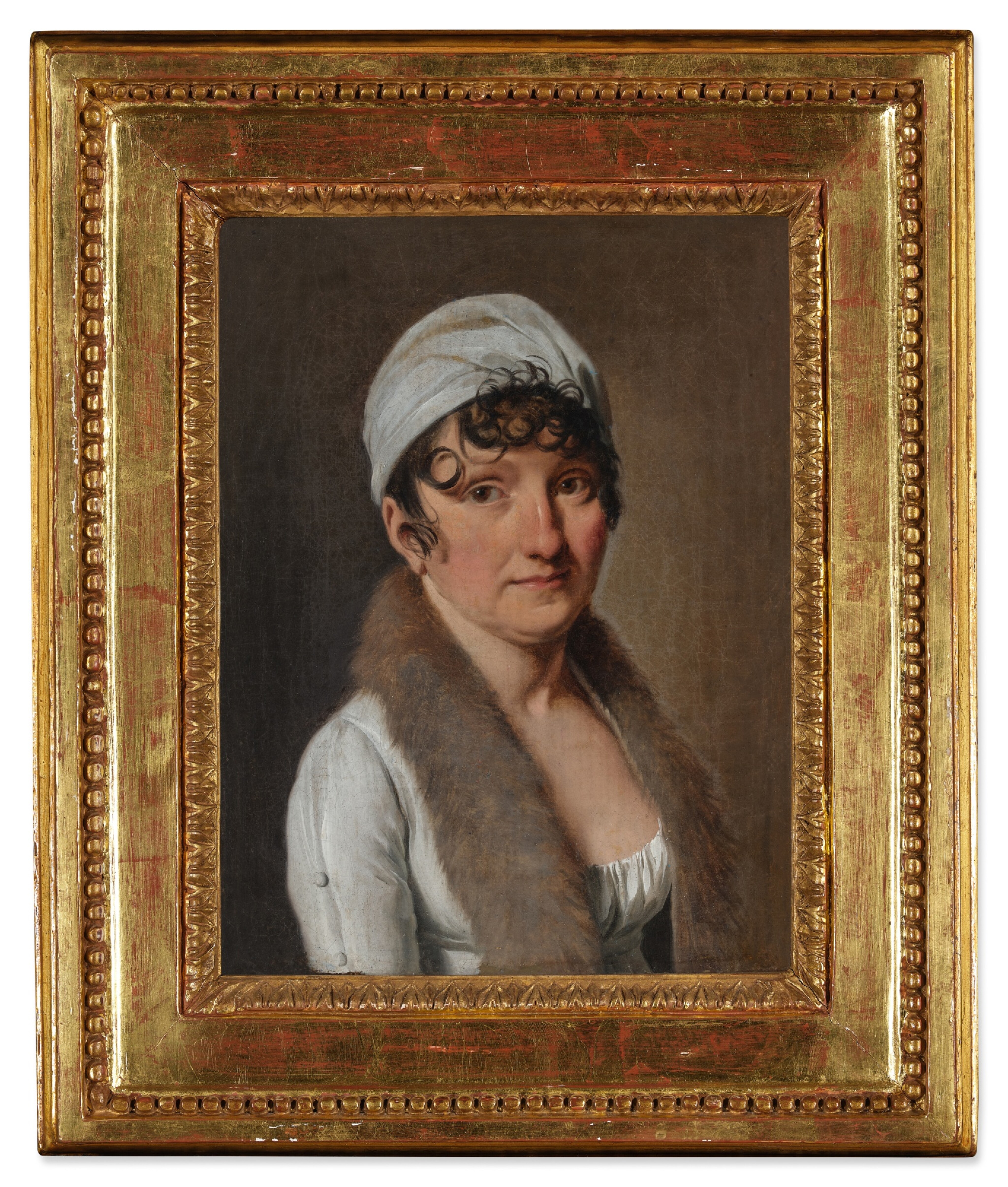 Portrait of a Woman Wearing a Fur Stole and White Cap