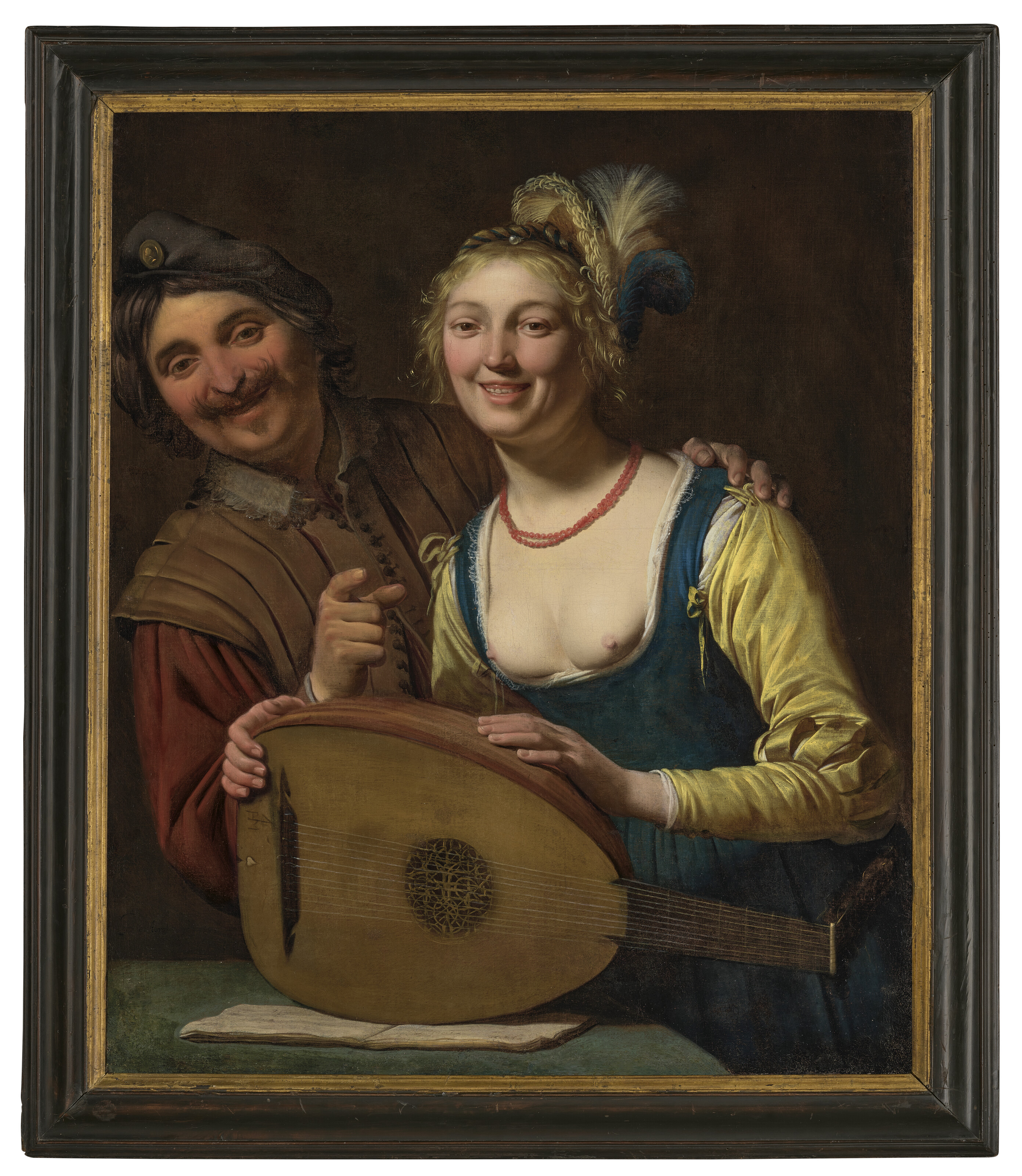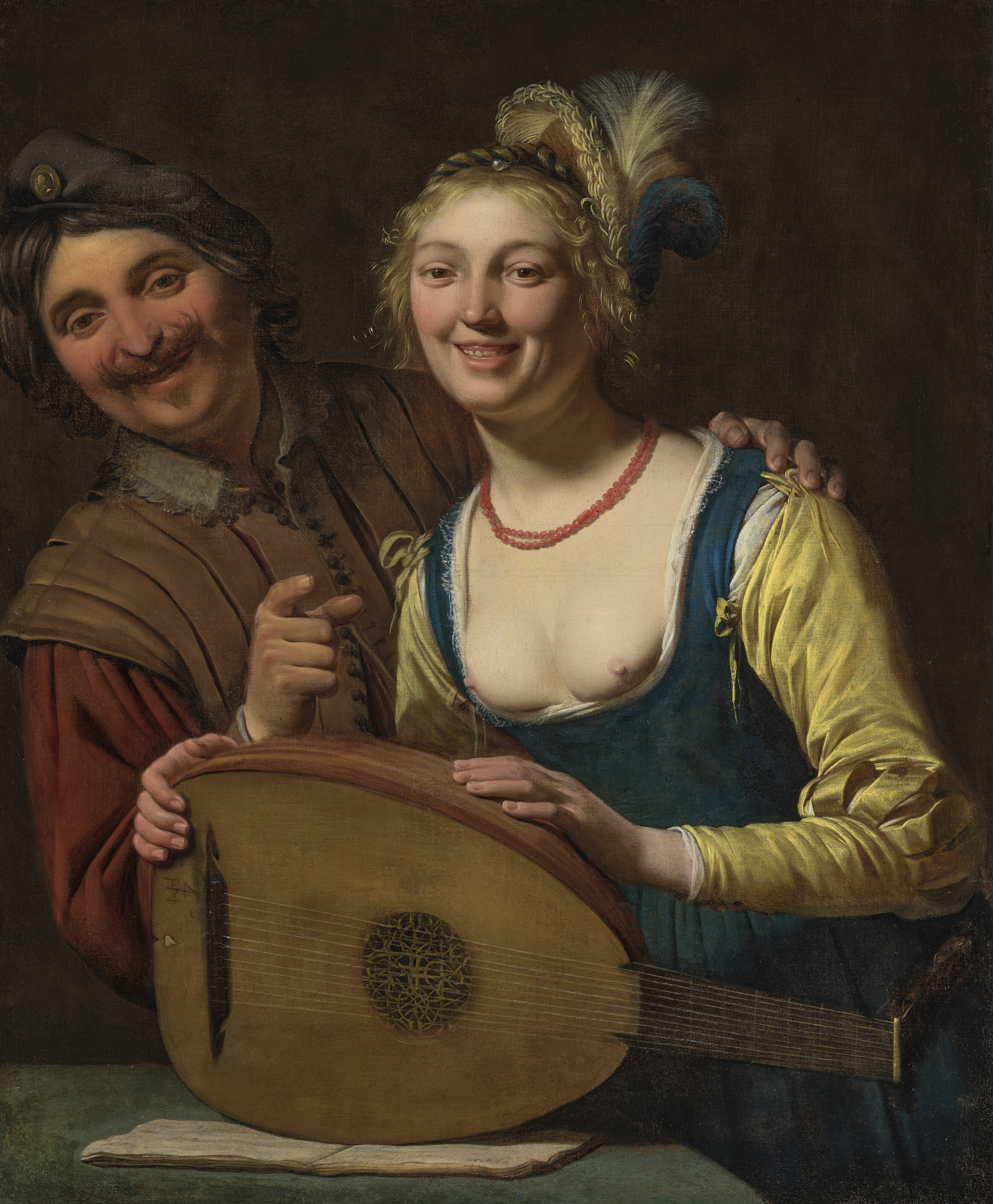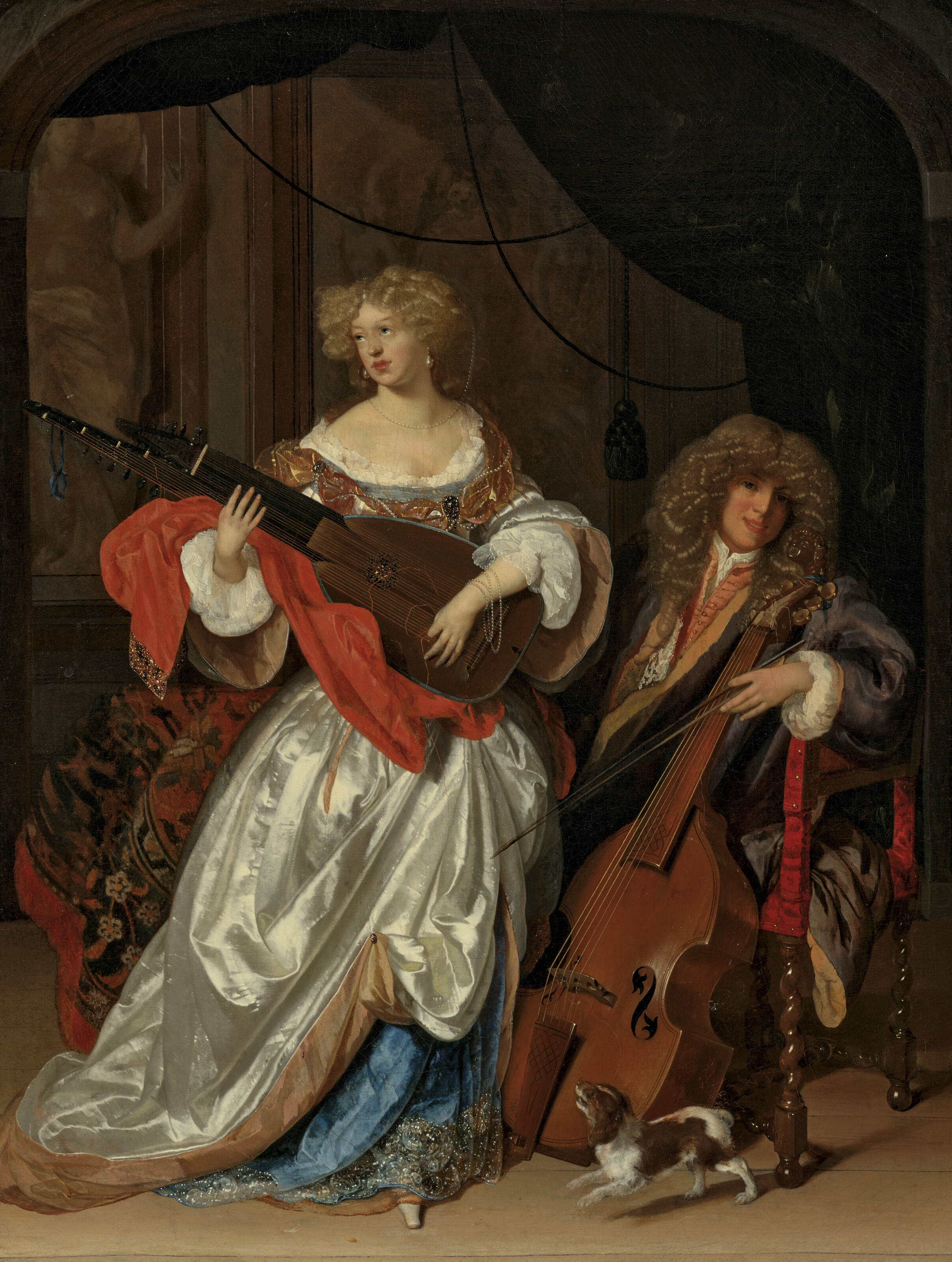 A lady playing a lute and a gentleman with a viola da gamba