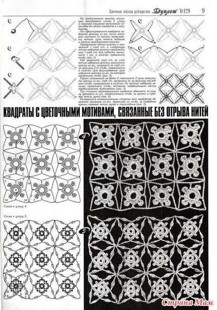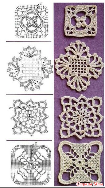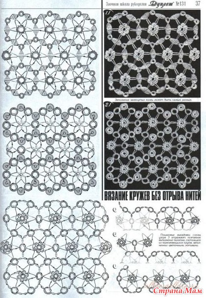 В течение двух недель, после операции руки, не могу вязать большие работы. Пару рядов и рука болит. Поэтому ищу в интернете и в моем архиве и нахожу много интересных узоров. Вот здесь подборка мотивов крючком. Очень мне понравились мотивы вязаные без отрыва нити.